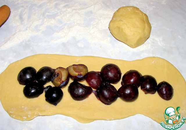 Сладкая булка с кислым виноградом и сочной сливой замечительно дополняют друг друга.