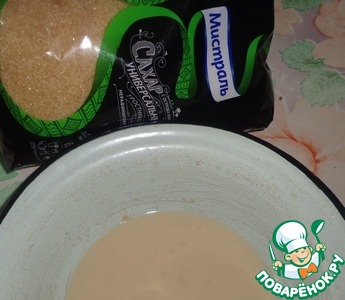Приготовим тесто. В теплом молоке разводим дрожжи. Затем добавляем 1 ст. л. тростникового сахара. Хорошо перемешиваем.