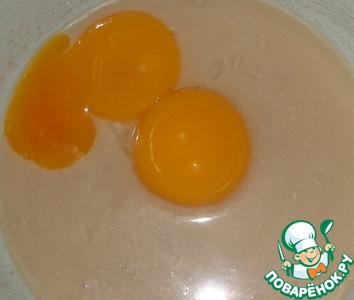 Желтки отделяем от белков. Желтки добавляем в тесто. Перемешиваем.