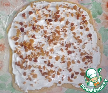Фундук измельчить. Белки взбиваем с тростниковым сахаром до густого состояния. Тесто раскатать в пласт. Смазываем тесто взбитым белком.
