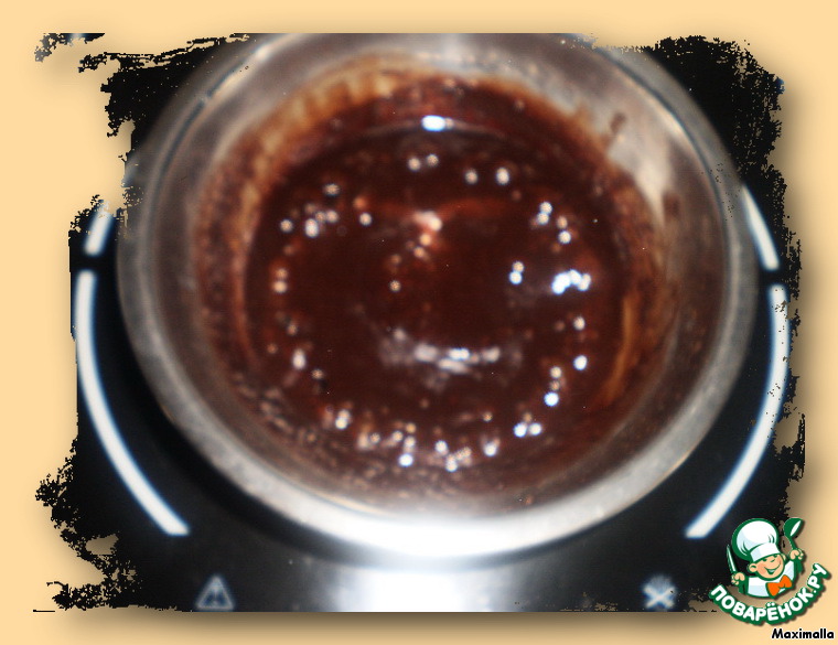 Польем теплым шоколадом, распределим его аккуратно по всей поверхности.
