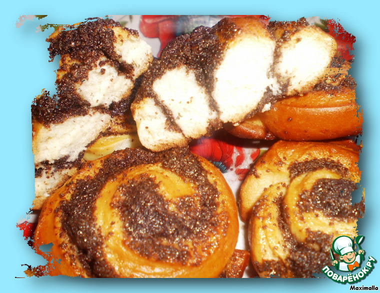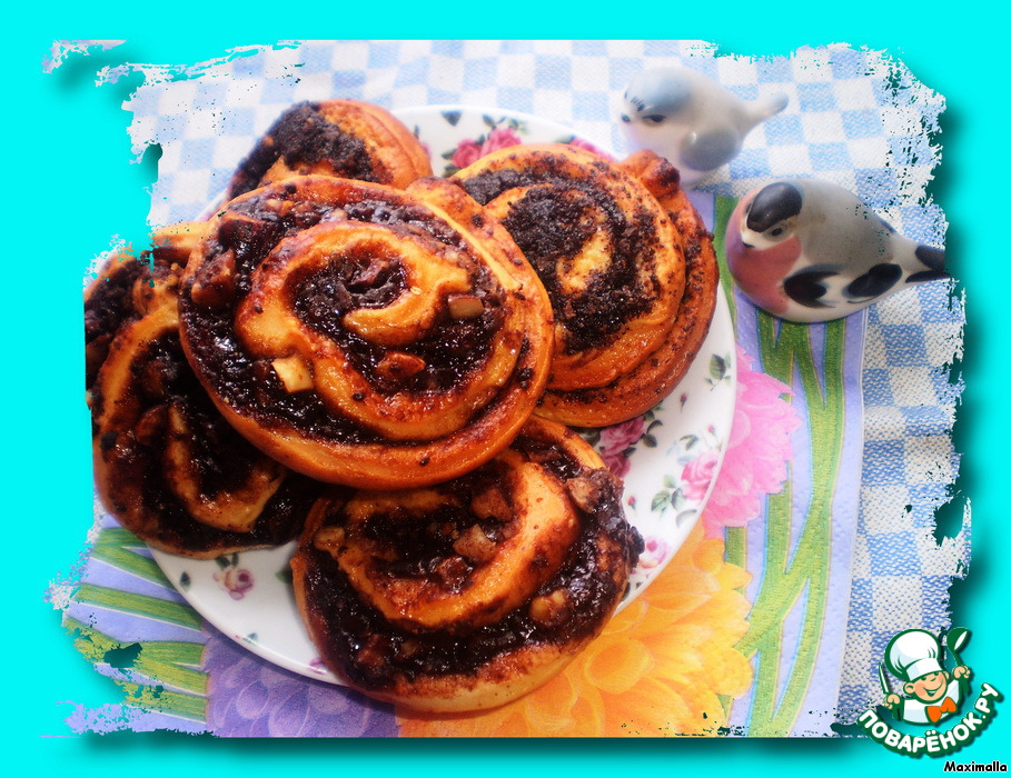| Сладкие булочки с начинкой из домашнего шоколада с орехами и изюмом и классические маковые. |