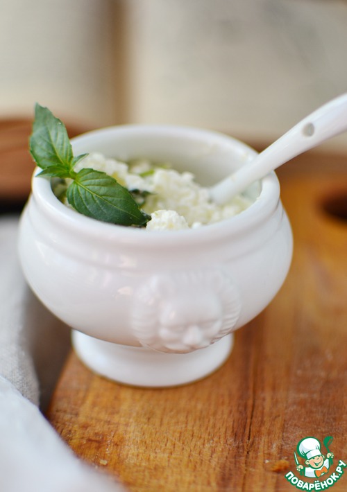 Смешать творог с яйцом, сахаром и молоком. Добавить лимонный сок и, по желанию, приправу для выпечки.
