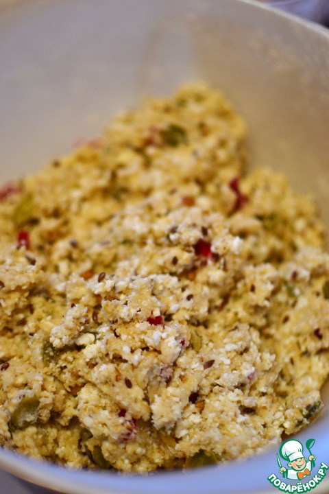 Перемешать творожную массу с мучной. Получаем вот такое тесто.