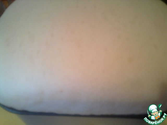 Помещаю ведерко в хлебопечку, включаю режим замеса теста. Даю тесту увеличиться в объеме в 2-3 раза.