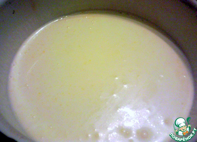 В небольшой кастрюле смешать теплую воду, растопленное сливочное масло и сметану. Охладить. У меня сметана была из холодильника, так что в процессе размешивания все прекрасно остыло само собой и последний шаг я пропустила.