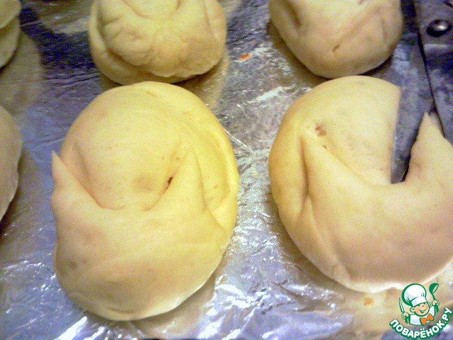 Выпекаем булочки в разогретой до 190 градусов духовке 10-15 минут, до легкого золотистого цвета.