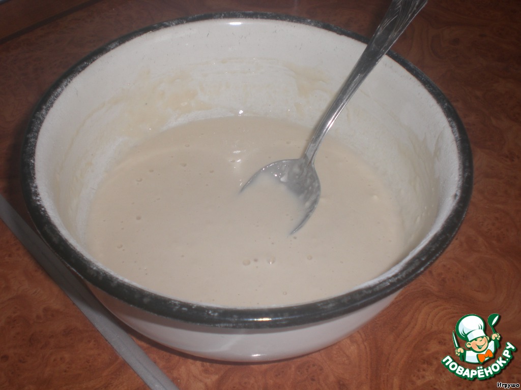 Добавим 1 стак. просеянной муки. Хорошенько размешаем и оставим в тёплом месте подходить, примерно на час.