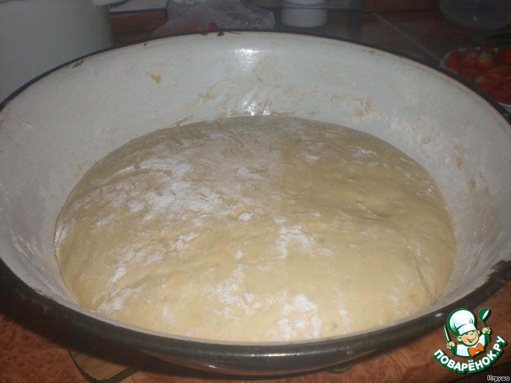 Добавим эти продукты в опару + оставшаяся мука. Муки может быть немного больше или меньше, она бывает разная.