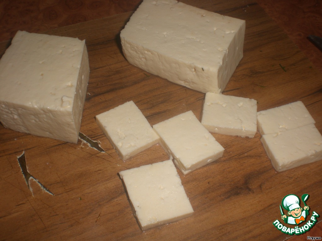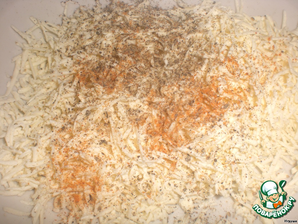 Пока булочки пекутся, оставшуюся брынзу натереть на мелкой тёрке, добавить к ней щепотку кайенского перца и щепотку чёрного молотого.