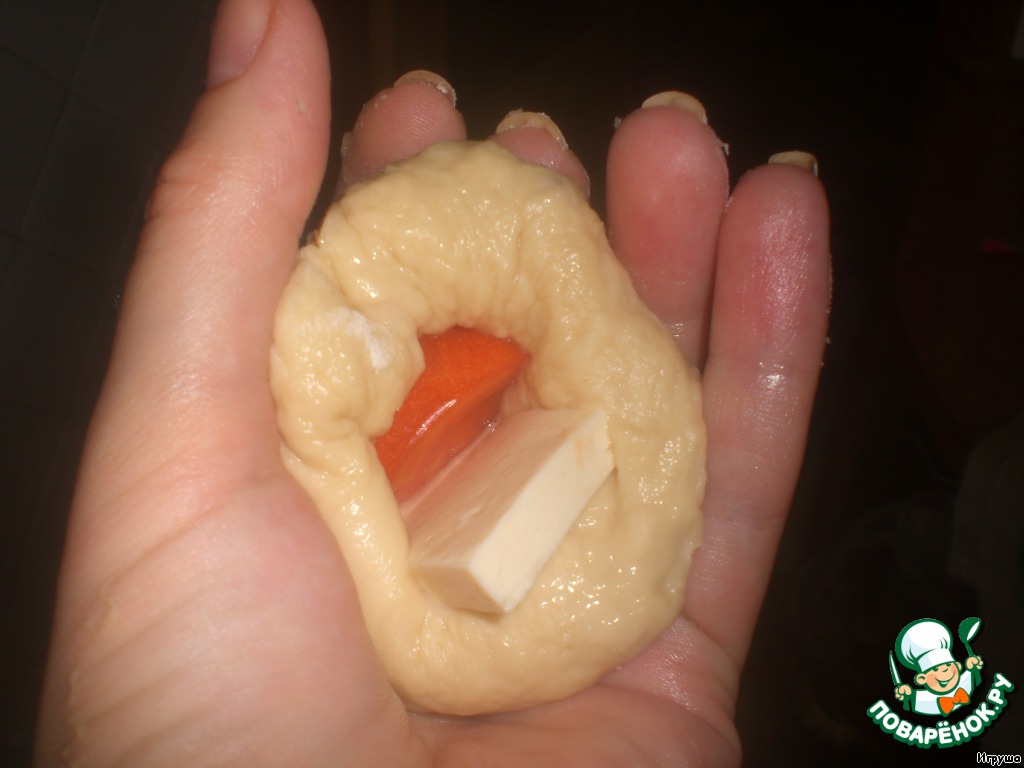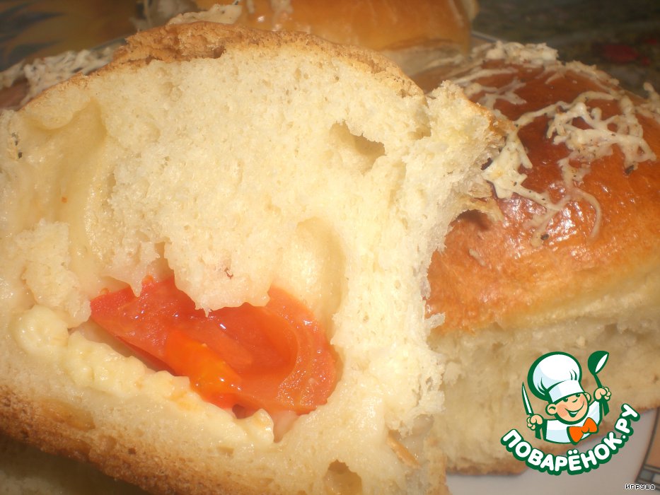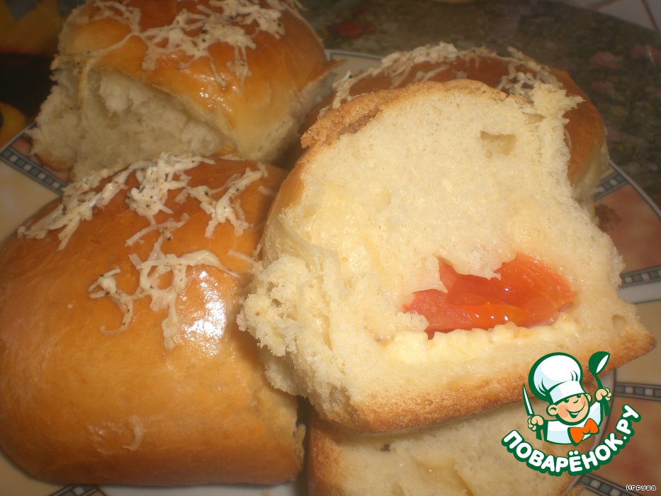 | Закусочные булочки, испечeнные из дрожжевого теста на пиве. Высокие, пушистые, ароматные, фаршированные помидоркой и брынзой, с пикантным вкусом перчика - они будут отличным дополнением к первым блюдам, вкусным перекусом на природе, пока вы ожидаете приготовления шашлычка. Также хорошо взять с собой в дорогу вместо бутербродов. Заходите, будем печь!!! |