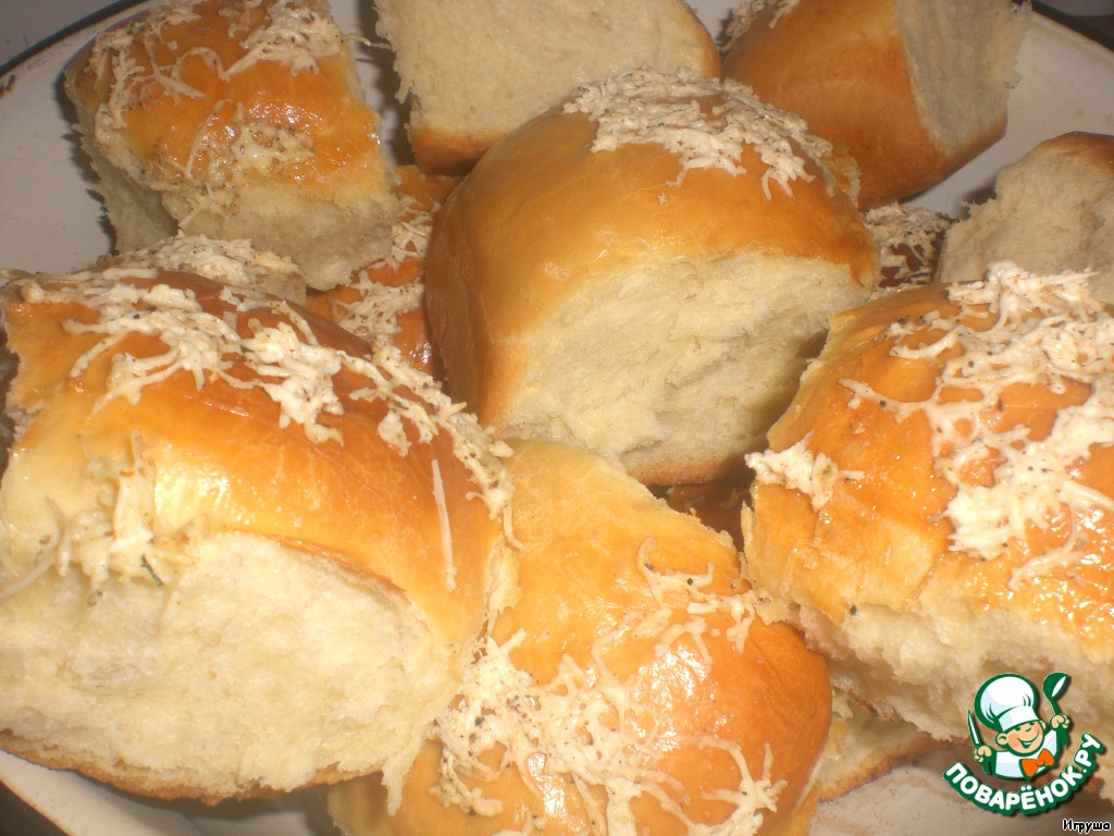 Вынув готовые булочки из духовки, посыпаем их пряной брынзой.