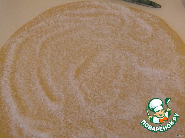 Раскатываем пласт, посыпаем тесто сахаром и кокосовой стружкой.