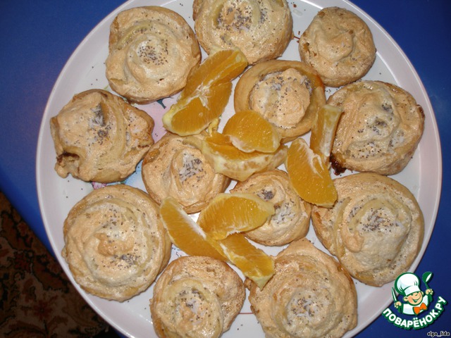 Готовые рулетики посыпать корицей и выложить на блюдо, к сoжалению, корицы в этот раз у меня не нашлось. :(