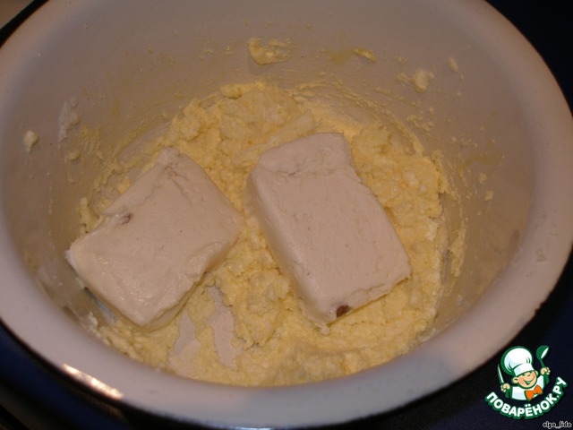 Желтки отделить от белков. Белки охладить. Маргарин растереть с желтками...