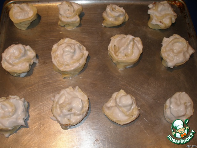 Белки взбить в крепкую пену, добавить сахар, снова взбить.
