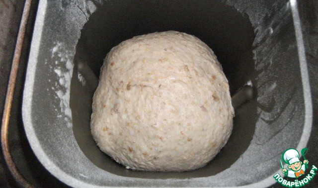 В ёмкость хлебопечки наливаем воду, растительное масло и высыпаем мучную смесь. Ставим в режим замешивания теста. Через час оно будет готово.