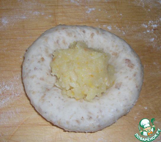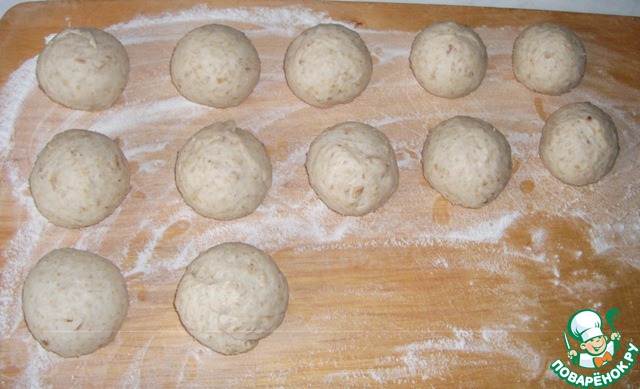 Готовое тесто разделываем на булочки. У меня получилось 12 шт.