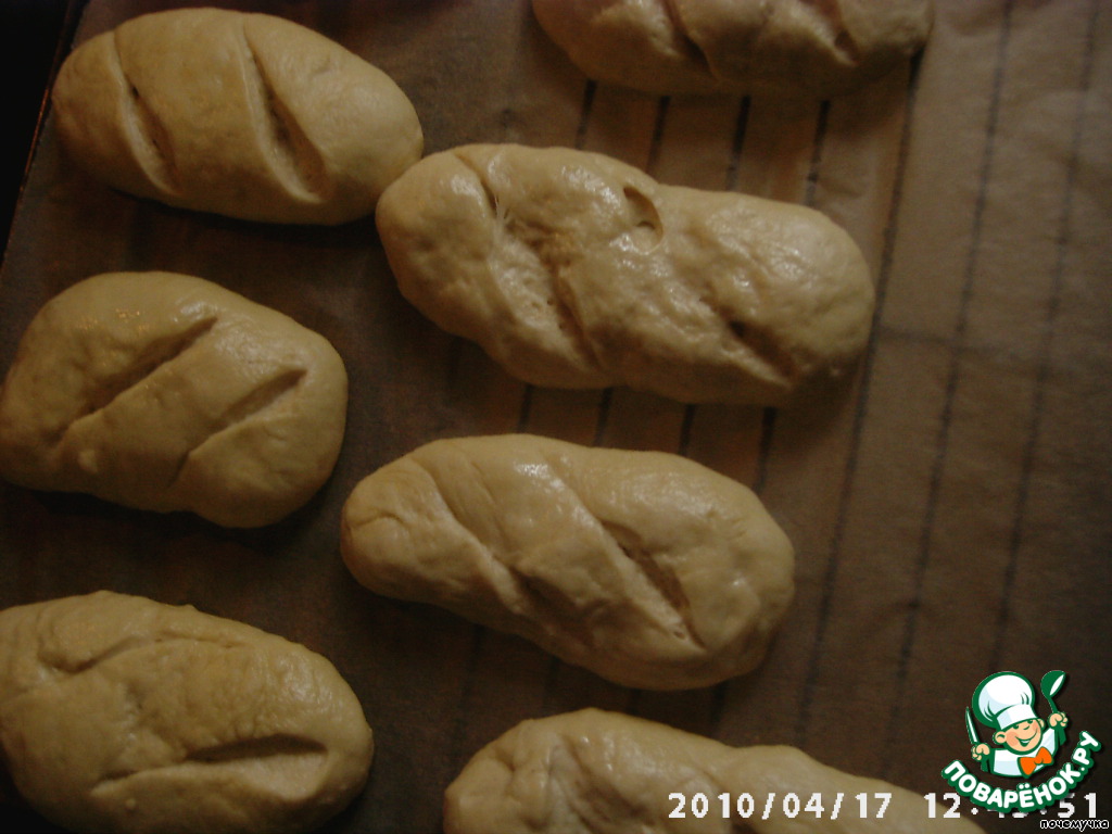 Разделить тесто на 16 частей и сформировать мини-батоны. Сделать надрезы. Дать мини-батонам подойти в течение 30 минут в теплом месте.