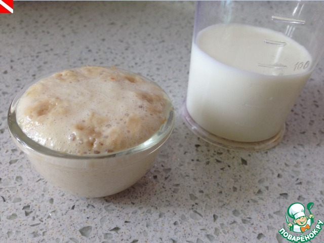 В небольшой части теплого молока разводим дрожжи и даем им подняться шапочкой.