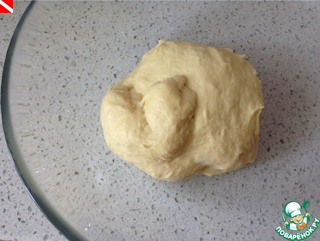 Из указанных ингредиентов замешиваем тесто. Я замешиваю в миксере насадкой крюк 5-7 минут. Укладываем в емкость, накрываем влажным полотенцем и даем отдохнуть минут 50.