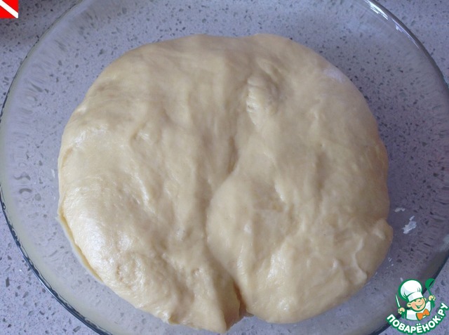 Вот с таким тестом бы будем работать дальше. Обминаем его, делим на 20 кусочков и еще раз оставляем на 30 минут (обязательно накрыть)