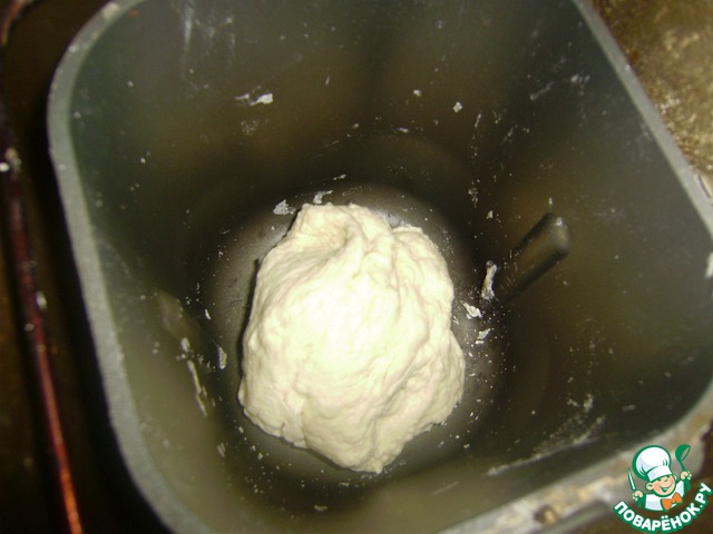 Теперь тесто отправляем в хлебопечку для вымешивания. И оставляем его подходить.