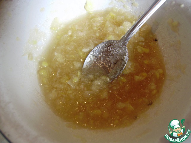 Делаем начинку. Половинку лимона перекручиваем на мясорубке. Если много сока, то сливаем. Добавляем сахар и крахмал.