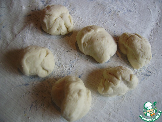 Делим тесто на 6 частей и даем отдохнуть 5 минут.