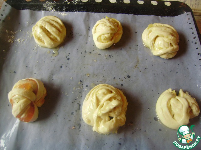 Выкладываем на противень и даем немного увеличиться. Смазываем яйцом.
