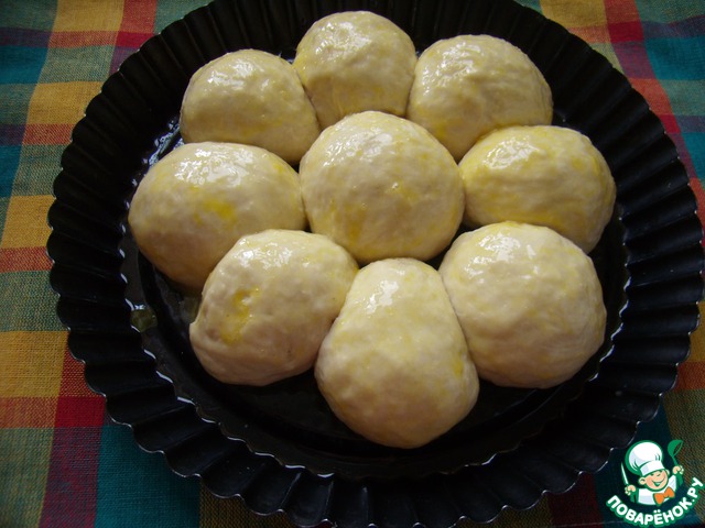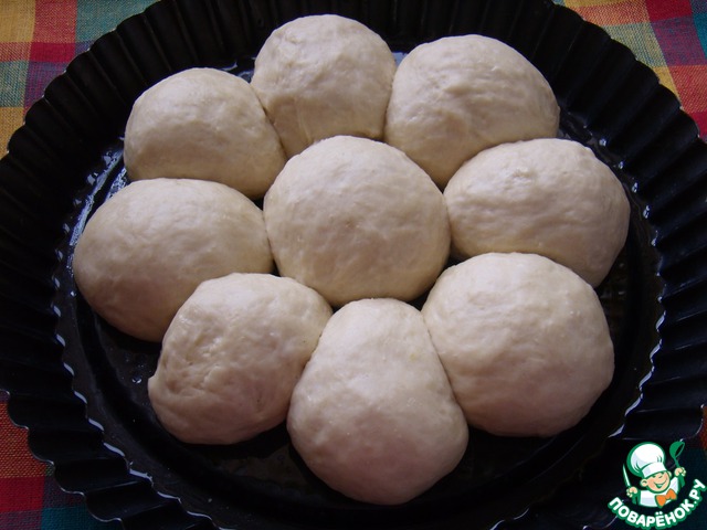 Разделать на небольшие булочки и дать расстояться, минут 15-20.