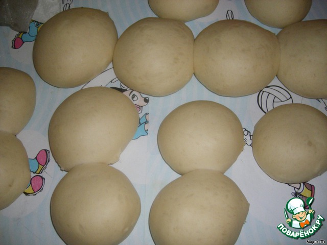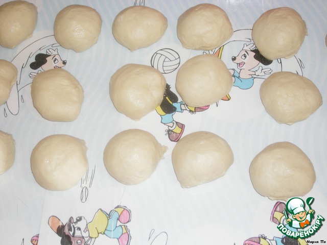 Раскатать колобки и выложить на смазанный маслом стол.