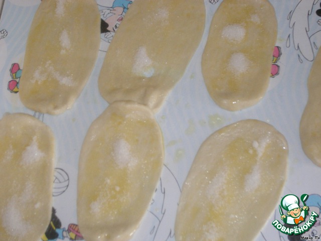 Смазать растопленным сливочным маслом и посыпать сахаром.