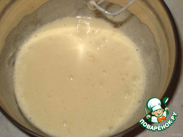 Яйцо взбить с сахаром в белую массу.