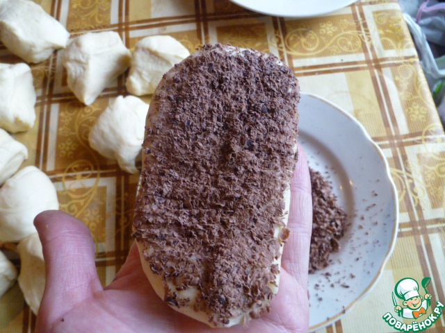 И заворачиваем нашу булочку шоколадом внутрь.