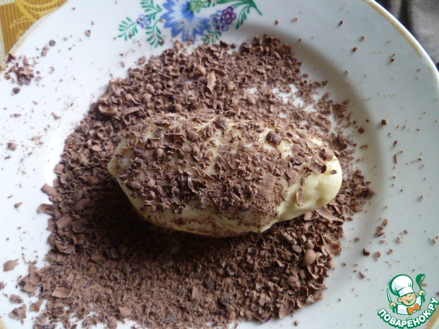 Сформировали булочку и кладем в шоколад.