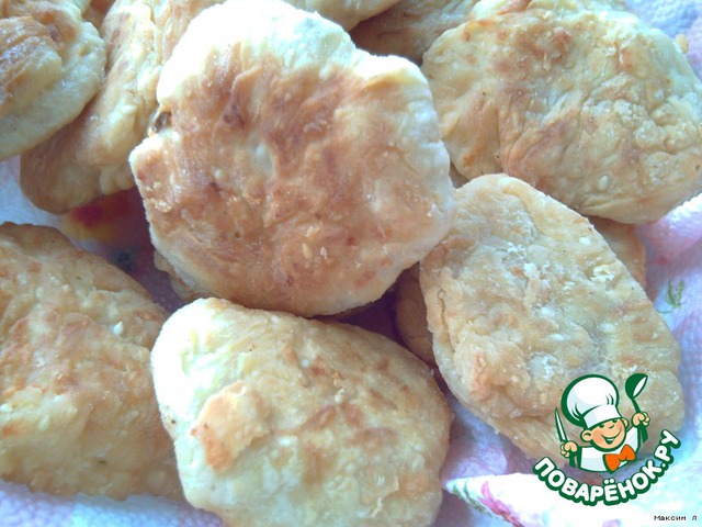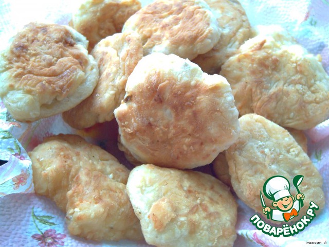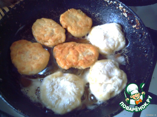 Потом скатываем из полученного кусочка шарик или делаем лепешку. Нагреваем на сковороде масло и отправляем туда булочки.