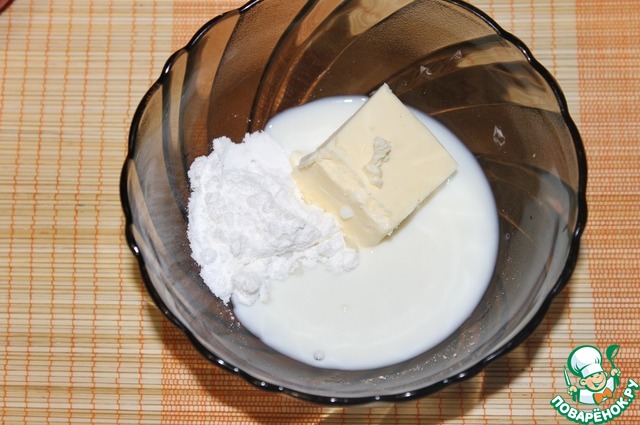 Теперь надо сделать сладкую глазурь: смешать теплое молоко, сливочное масло и сахарную пудру