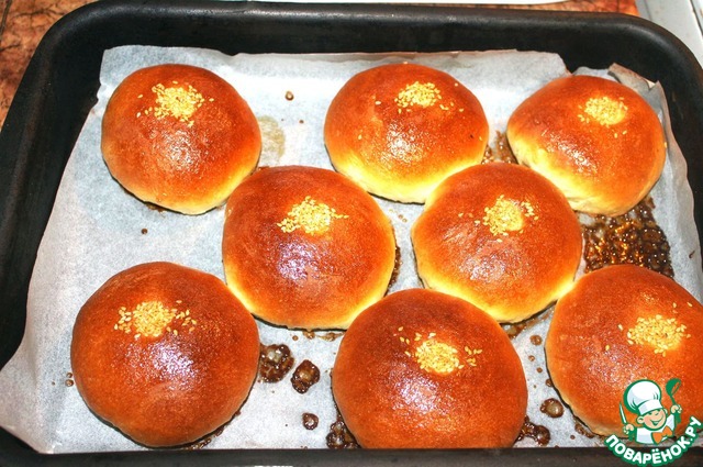 В середине каждой булочки пальцем сделать углубление и посыпать в него кунжут