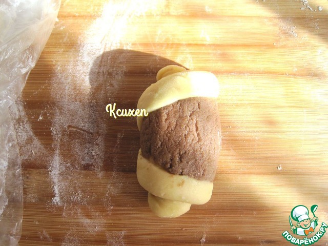 Края дрожжевого теста завернём. Узкий "носик" защипнём.