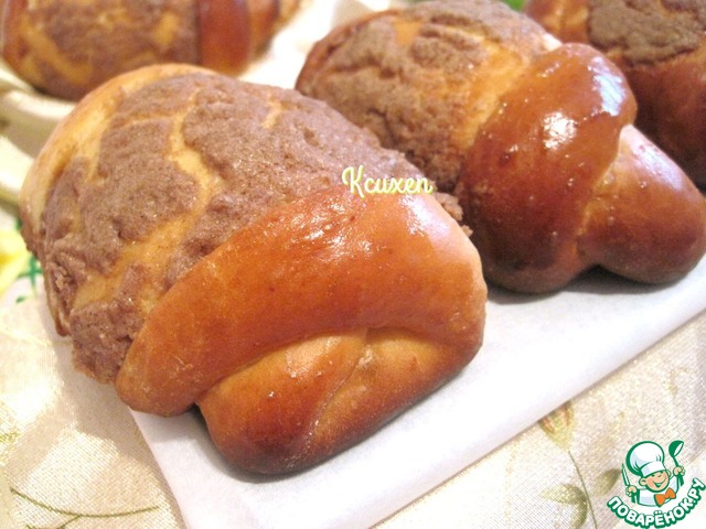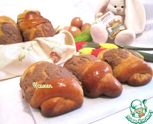 Рогалики получились пышными, дрожжевое тесто воздушное и сдобное.