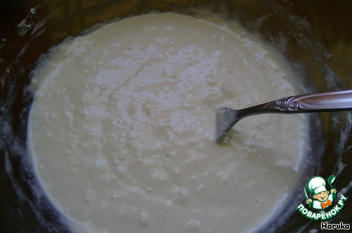 Затем добавить подогретое молоко и замесить жидковатое тесто-опару. Слегка присыпать мукой, накрыть полотенцем и дать подойти в теплом месте.
