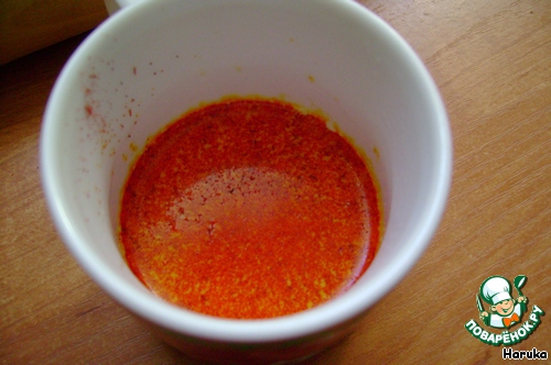Добавить желтки, сметану, шафран, немного соли. Все перемешать.