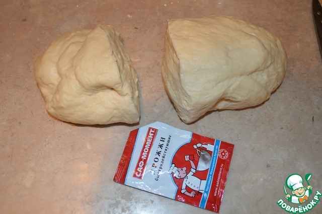 Когда тесто подойдет то его следует обмять и разделить на две части 1/3 и 2\3.