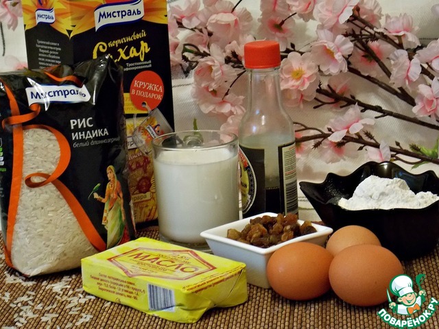 Рис от " Мистраль " сварить до готовности, но чтобы зернышки оставались целыми. Изюм замочите в саке на 10 мин. У нас напряженка с этим напитком, поэтому я замочила в коньяке.