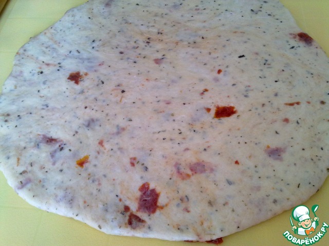 Смешайте вяленые помидоры, просеянную муку, базилик, орегано, добавьте соевый соус, оливковое масло, вспененные дрожжи, все перемешайте.