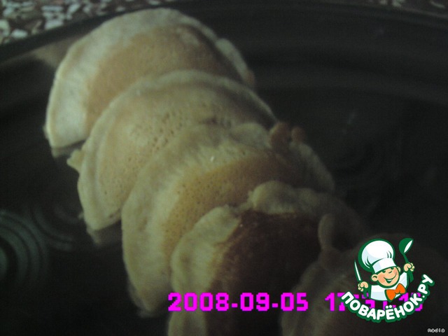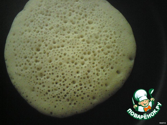 Разогреваем сковороду и выливаем около двух-трех столовых ложек теста. Сковороду ничем не мазать, а хорошо разогреть!!!
