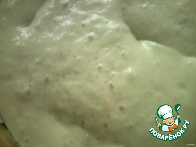 Дрожжи разводим в 1/2 ст воды, если дрожжи старые оживим их с помощью ложки муки и ложки сахара, дадим забродить, процедите. Добавляем муку(просеять)и замесить тесто, оно должно быть нечто среднее между блинным и оладьевым, т.е. быть достаточно густым и держать "форму", при этом легко литься. Оставляем на час-полтора для брожения.