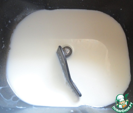 Тесто я готовила в ХП, но ниже опишу как его готовить тем у кого нет данного дивайса. В моей ХП сначала нужно заложить жидкие продукты, а затем сухие. Наливаем в чашу ХП молоко.