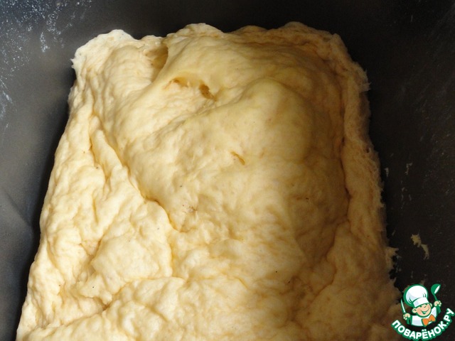 В моей ХП приготовление теста занимает 1,5 часа. Обещанный алгоритм для тех, у кого нет ХП. Если у Вас сухие дрожжи хлебопекарские, то добавляем сухие дрожжи к теплому молоку. Если дрожжи активные, то смешиваем их с мукой. Также в молоко добавить мед и тыквенное пюре, размешать. Добавить просеянную муку, замесить тесто. Оставить на 30 минут. Сливочное масло (или маргарин) растопить на водяной бане или в микроволновой печи. Масло добавить к тесту, снова вымесить и оставить подходить еще на 1 час.